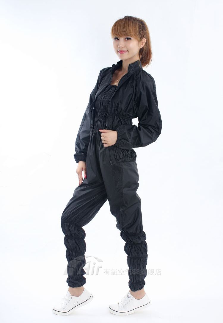 掌柜推荐商品    黑色  玫红   粉色  湖蓝 穿减肥服训练  上衣加吊带裤一套58元 | 上衣加长裤一套56元 | 上衣加长裤一套56元 | 长裤一条25元 | 长裤一条25元 | |  上衣一件31元 |  吊带裤一条27元 |  吊带裤一条27元 |  吊带裤一条27元 |  吊带裤一条27元 | 因为专业所以领先; 颜色:黑色,粉色,玫红,蓝色 【尺寸号码】M:155-160 L:160-165 XL:165-170 XXL:170以上        ![]()  店主介绍:亲爱的买家们,以下是我亲身体验后总结出的经验和宝贝具体的功效!! 1.这款宝贝属于健康减肥的产品,对身体没有副作用,可以说是0风险,绝对绿色环保健康减肥的代表首选产品! 2.因为此产品是PVC涂层材质的,属于不透气材质,穿着此产品运动后会大量排汗,从而通过排汗达到排水,排油,排毒的功效。 3.健康的健身 ,运动既可以塑身减肥,又可以使运动者心情愉悦,起到调节情绪的作用! 4.穿着此产品运动,也可促进血液循环,改善身体机能,提高身体素质! 5.老少皆宜,不论老人还是年轻人都可以使用,绝对健康,绿色环保无副作用! 此材质为不透气材料,运动适量.递增加强运动量,慢慢让你全身都均匀的瘦下来..达到完美的瘦身效果. 【面料】 外部为防雨绸,内部为PVC涂层。 【款式搭配】减肥裤一共4款,减肥裤可单独穿着,如需全身减肥可与减肥上衣搭配使用。可直接贴身穿着,天冷时建议内着贴身纯绵内衣裤,以免汗水过多,运动后受凉。 【温馨提示】本店的自信缘于产品的质量,厂家直接供货。款式最全的减肥裤专卖,请勿等同于其它低质品。 【选择方式】体形偏胖者请准确测量胸围、臀围,并参考下方具体尺寸选择(选择合适尺寸要综合考虑身高及体重,先看肥瘦再看长短。)因面料无弹性并配合运动使用,所以选择号码时宁大勿小。 特别注意: 选择连体裤时所选裤子的胸围尺寸要大于自身臀围尺寸,方可提上去。 【温馨提示】1、因每个人体形比例不同,小店只能凭经验推荐号码,具体号码选择,需要买家自己量好确定。号码不合适可进行调换,往返邮费由买家负责。 2、因相机像素/电脑显卡区别,色板有轻微色差,不同批次同色也偶有轻微色差,对颜色要求严谨的买家请慎重购买比如买家臀围110,虽然XL号臀围114,但买家必须选XXL,因为连体裤从下往上提,XL胸围仅106,小于买家臀围110,会卡住提不上。 【调换运费说明】请购买前看清款式/颜色/号码,商品未使用并因买家原因提出更换或退货,可予更换或退货,往返运费由买家负责,退货时扣除发货时运费。 【产品质量说明】因减肥裤是消耗性产品,同一产品使用习惯不同,寿命也不同,因此使用后损坏不予调换。因厂家直接供货,故产品上偶有线头/褶皱/可洗却的轻微脏痕/未打吊牌不属于产品质量问题。新出厂面料会有轻微气味,洗后风吹干后会自然消失,非质量问题,对此不能接受的买家,购买时需注明要压库产品(因留库时间长气味已消散)。 【商品留存】商品流动性大,各款现货颜色查看所需产品是否有现货。产品拍下后保留三日,超过三日不付款不予保留。如买家付款后产品无货,小店会及时与买家联系更换或退款,没有留下联系方式并无回复的买家,会自行调整发货。 【洗涤方式】因内涂层为PVC,洗涤需轻柔,不可机洗,尽量不用洗衣粉和皂类。正确的洗涤方式可延长寿命。 【晾晒方式】洗后不要使劲拧干,以免涂层脱落,挂于通风处风干即可,不要太阳下直晒。 【使用注意事项】避免与利器尖物接触,以免划破布料。不要在骑马机、自行车等导致面料磨损的运动器械上使用,以免加速涂层脱落。